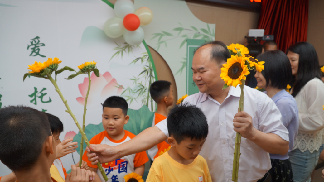“欢迎大家驶入这个神奇的知识港湾!希望你们睁大好奇的眼睛,伸出灵巧的双手,全身心投入这趟奇妙旅程,让知识的光芒照亮纯真的脸庞,让协作的暖流滋养幼小的心灵。”开班式上,主办方热烈欢迎孩子们的到来。随后,托管班老师与孩子们共同献上精彩的文艺表演东方汇赢,现场掌声与笑声交织。全体学员还进行了宣誓,以响亮的声音宣告对暑期成长的期待。当天,孩子们还获赠了向日葵,寓意“我心向阳”,孩子们像向日葵般茁壮成长。开班首日特别安排了钟村街龙狮文化专题讲座,邀请了番禺区龙狮传承人陈礼滔为孩子们讲解这一传统技艺的精髓。