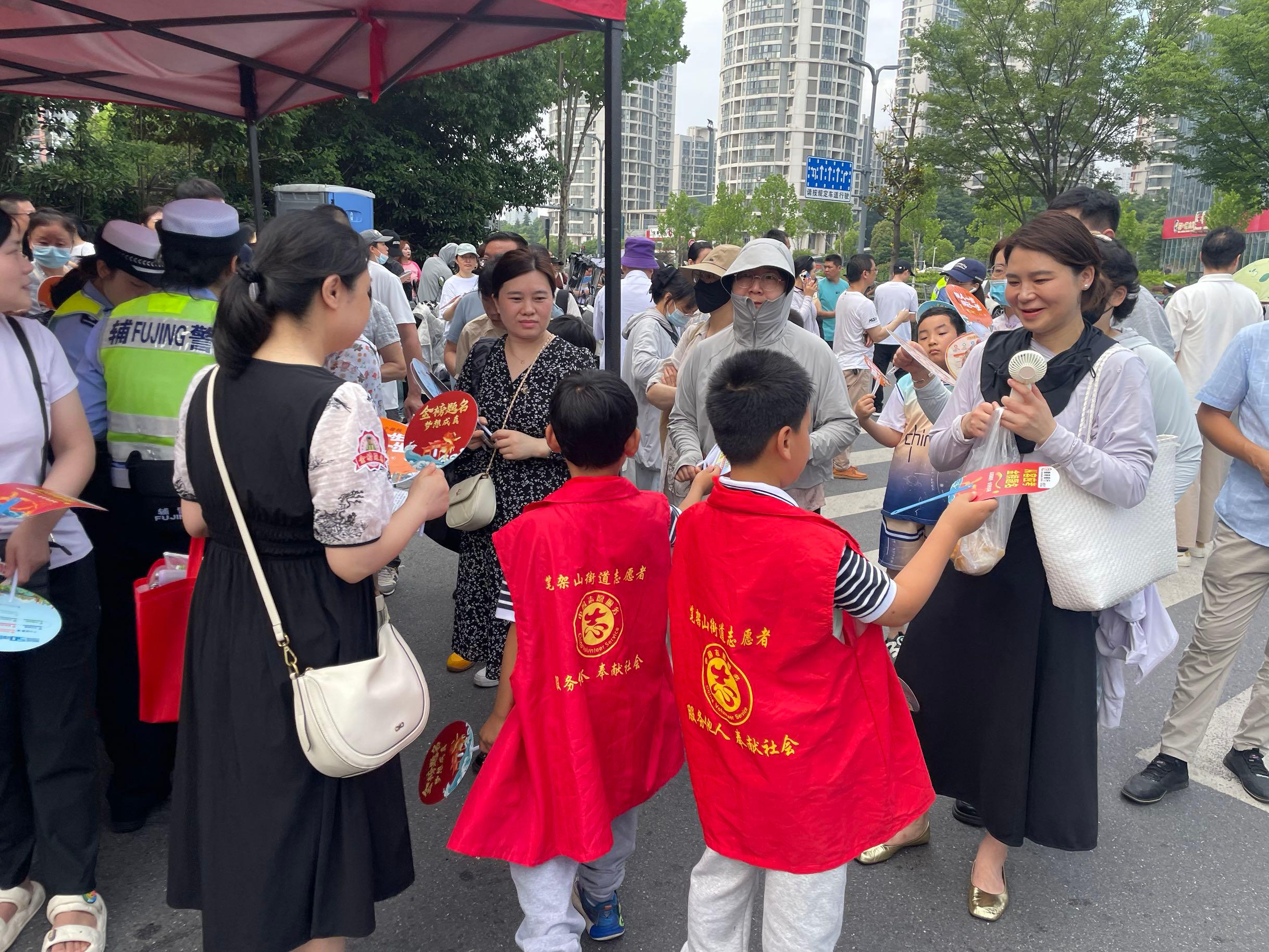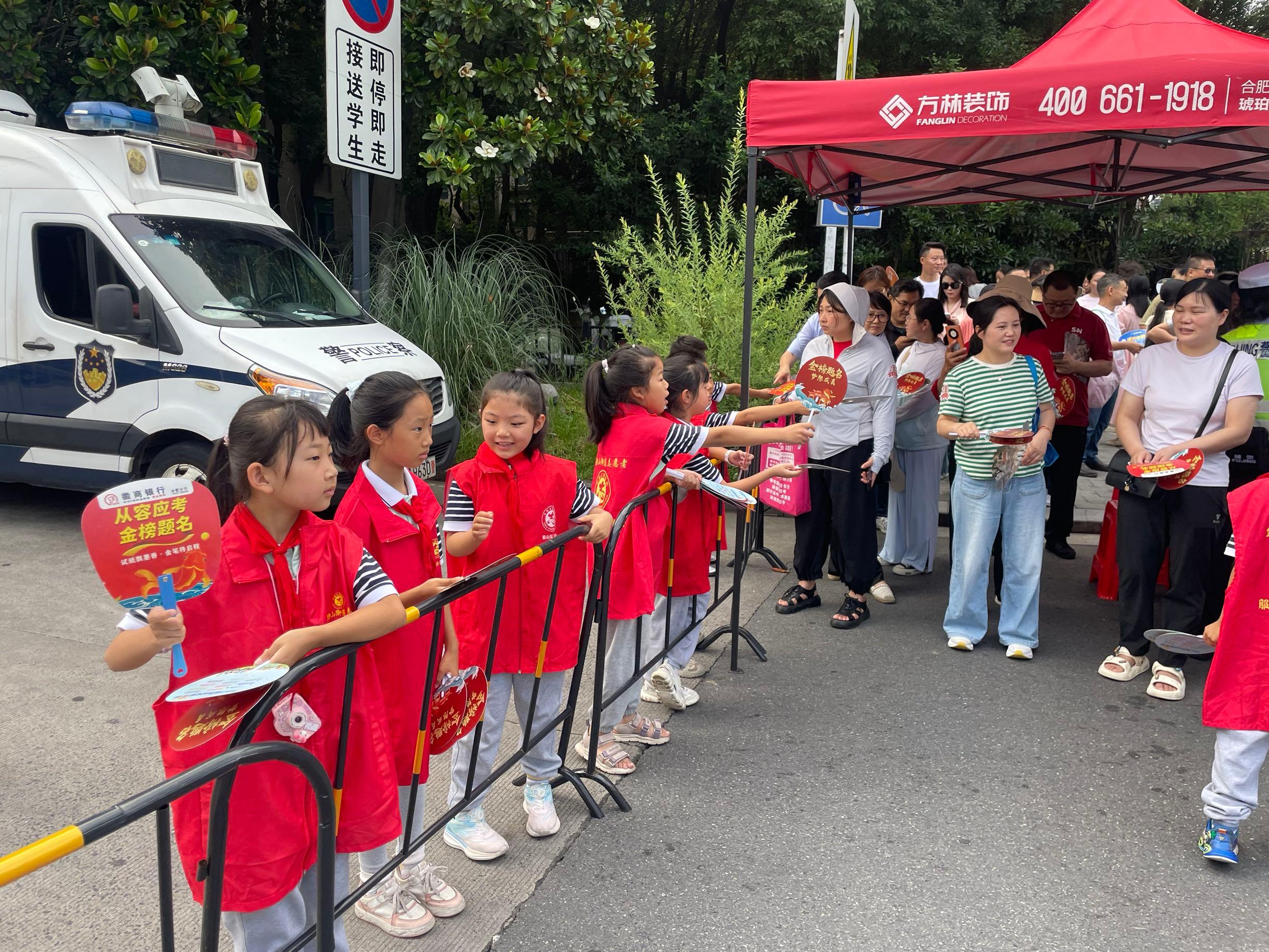 据了解,中考期间顺配宝,合肥文博苑社区特别组织“小小志愿者助力中考”公益活动。来自西园新村小学南校的志愿者们,化身“爱心小使者”,穿梭于等候的家长中间,为他们送上矿泉水、扇子,还准备了藿香正气水、清凉油等防暑降温物品,为中考保驾护航。